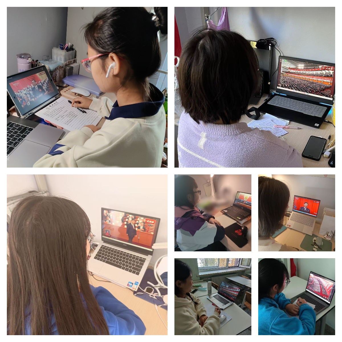 大会开始前,同学们在腾讯会议线上集合,学习探讨了二十大的重要意义,等待大会开始。上午10时整,党的二十大正式召开,习近平总书记代表第十九届中央委员会向大会作了题为《高举中国特色社会主义伟大旗帜,为全面建设社会主义现代化国家而团结奋斗》的报告。其间,同学们认真学习总书记讲话并做笔记,更深入的理解与认识中国过去五年的工作和新时代十年的伟大变革、更加明晰了自己作为新时代青年的责任与义务。会后,同学们受到党和国家数年如一日风雨无阻的奋斗激励,纷纷写下心得体会,表达了对党和国家的感恩和对更有高度、更有境界、更有品位人生的不懈追求。