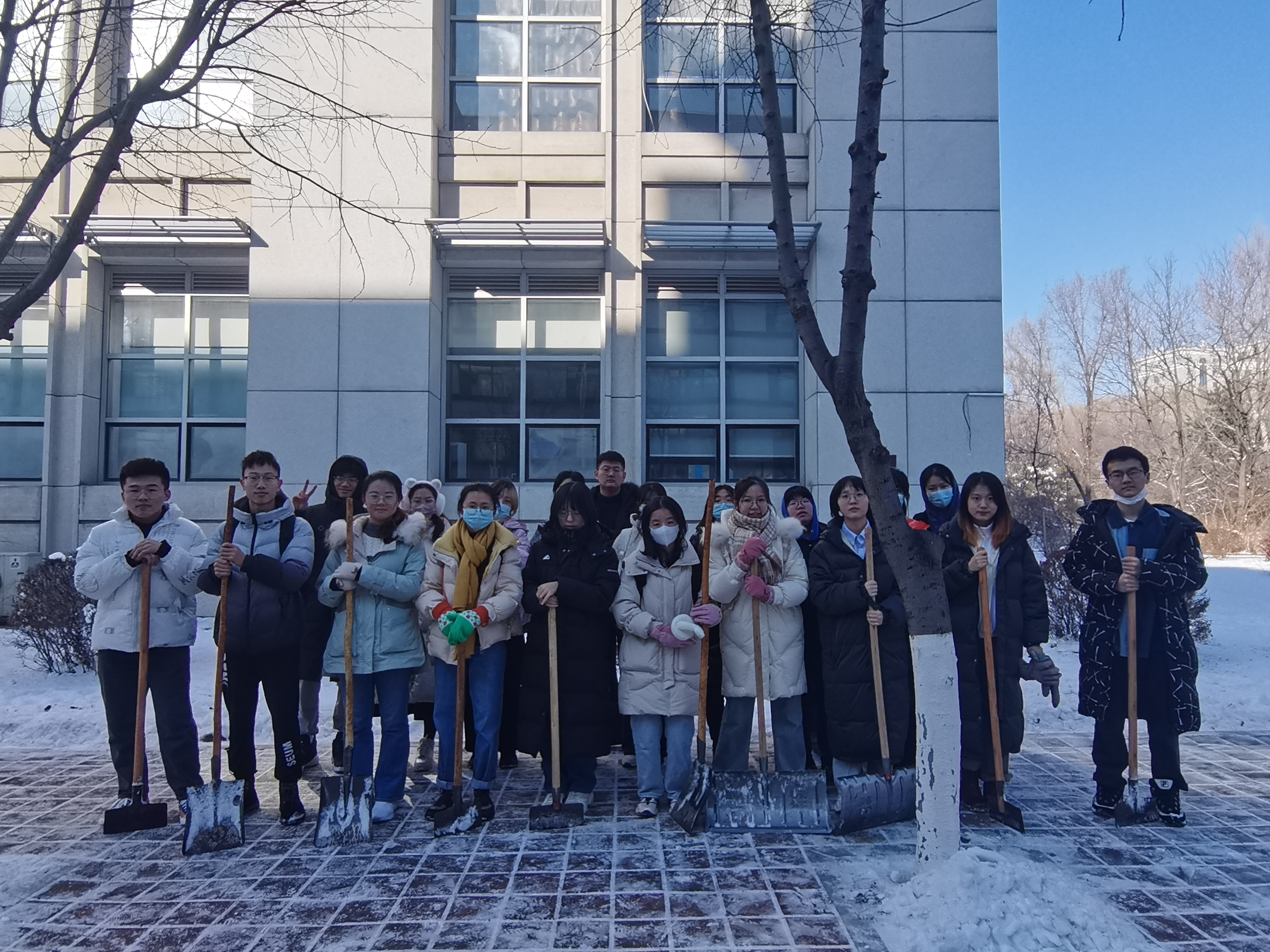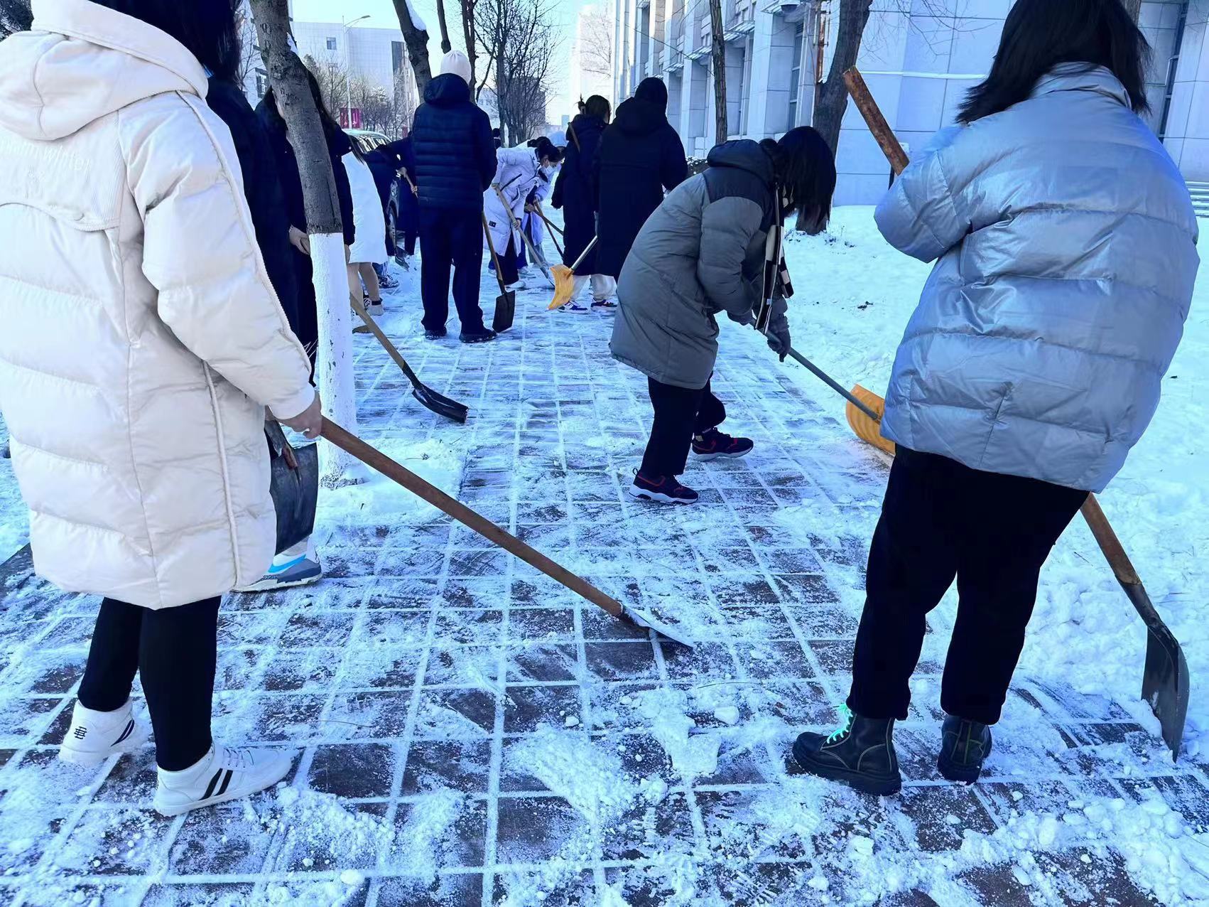 近日,受强冷空气影响,长春市降温降雪,校园内道路积雪结冰严重。根据学校统一工作部署,外国语学院组织2022级全体学生开展校园扫雪除冰劳动教育活动,以“包片划区”形式做好分工,引领全体新生扎实开展劳动教育,展现青年担当。